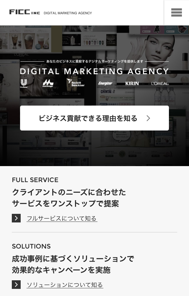 スマホは、当然PCとはスクリーンの大きさや操作性が異なり、デザインにも限りがあります。だからこそ、ホワイトスペースの取り方、フォントサイズ、アニメーション、ノンバーバル、読み込み速度、などWebデザインの基本となるテクニックや視覚効果が、PCサイトよりも重大な差を生みます。